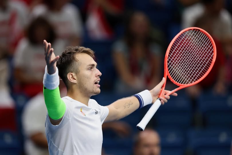 Piros Zsombor két szettben megverte az osztrák Lukas Neumayert, s ezzel kiegyenlített a Magyarország-Ausztria Davis-kupa-találkozón. A bolognai szuperdöntőbe jutás így az ötödik meccsen dől el, amelyet Fucsovics Márton játszik Jurij Rodionov ellen. (Fotó: MTSZ/Cseh Péter)