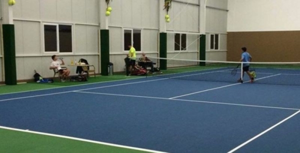 A speciálisan ízületkímélő technológiával kialakított, kemény borítású, télen fűtött, nyáron hűtött, zárt teniszcsarnokban kizárólag beltéri, világos talpú, indoor teremcipőben lehet a pályára lépni.