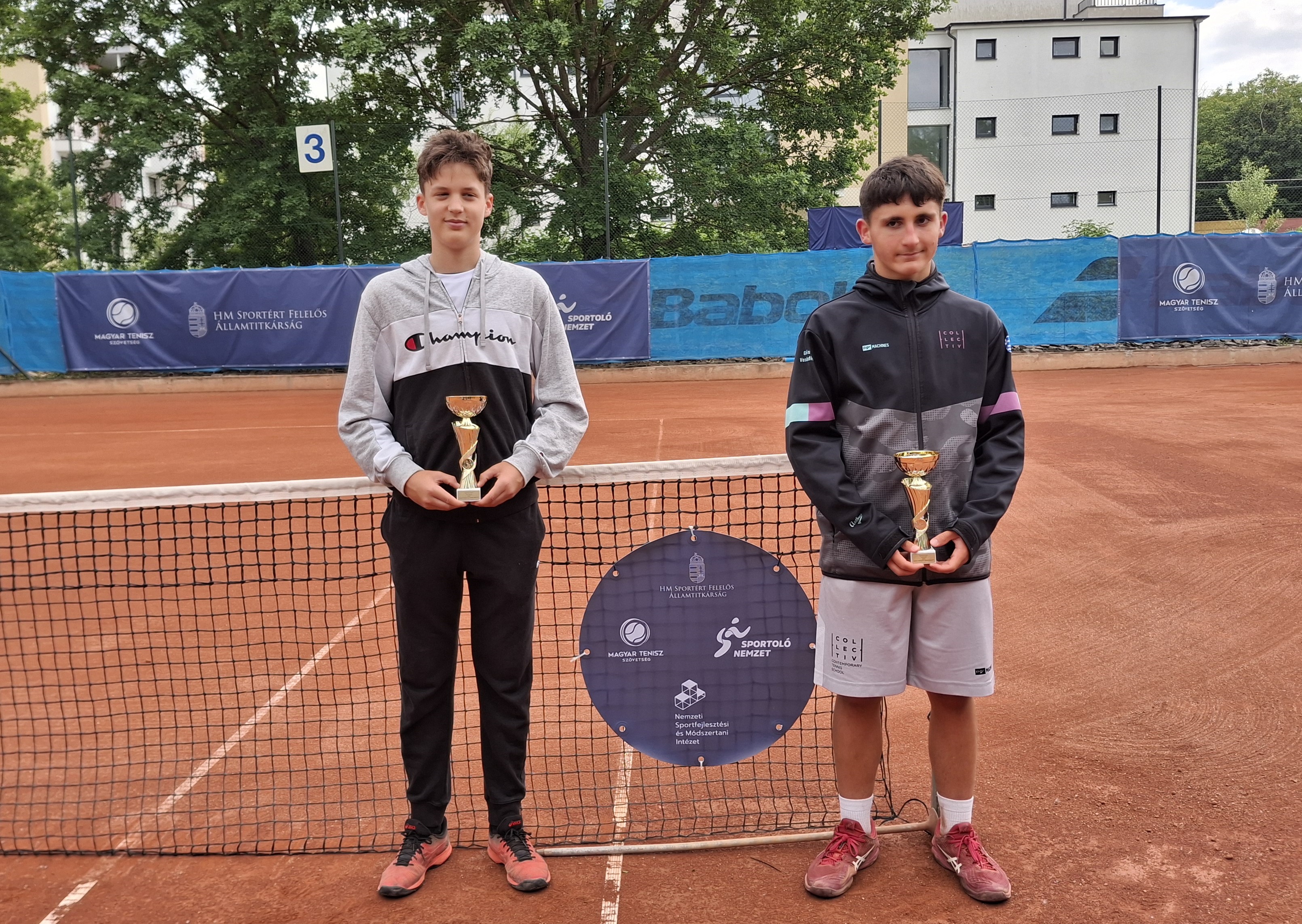 Mogyoródi tornagyőzelmét követően, az Alfa Kupán is Jóny Márk (képünkön balról) bizonyult a legeredményesebb magyarnak, hiszen a hazai rendezésű U14-es Tennis Europe torna egyesben az elődöntőig jutott, párosban pedig meg is nyerte azt klubtársa Balázs Dávid oldalán. Bronzérmet szerzett még Szabados Gellért görög partnerével, valamint a Simon Amanda, Vecseri Bianka páros, illetve Markovits Mirabell az amerikai Valdes oldalán.