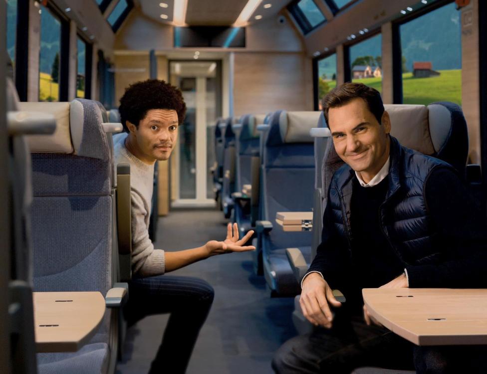 Roger Federer, a világ egykori legjobb teniszezője és a dél-afrikai komikus, Trevor Noah állt össze abban a reklámfilmben, amelyet a Switzerland Tourism megrendelésére forgattak és a „Svájcban soha nem vagy rossz vonaton” címet viseli.
