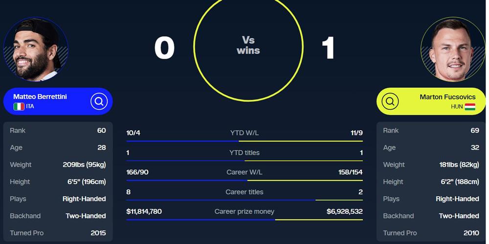 Fucsovics Márton (ATP 69.) sorozatban harmadszor kapott nagyon nehéz sorsolást Grand Slamen: most Wimbledonban Matteo Berrettini (ATP 60.) ellen kezd és ha sikerül győznie, akkor a világelső Jannik Sinner következne.