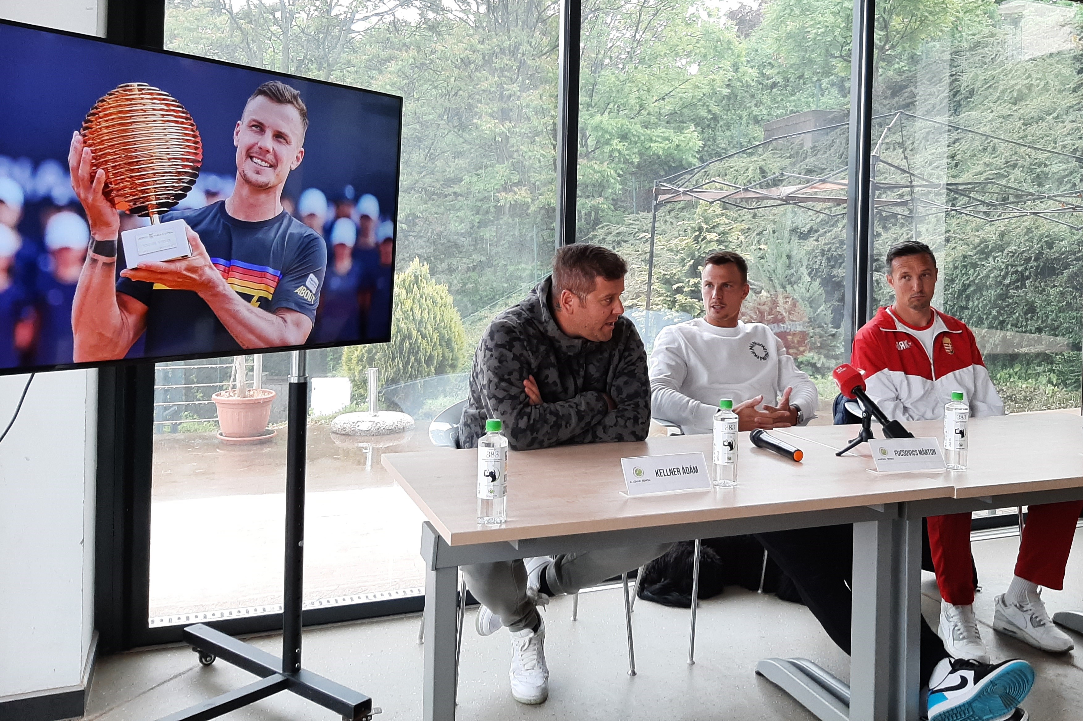 Kellner Ádám, Fucsovics Márton és Palágyi Miklós a csütörtöki sajtóbeszélgetésen