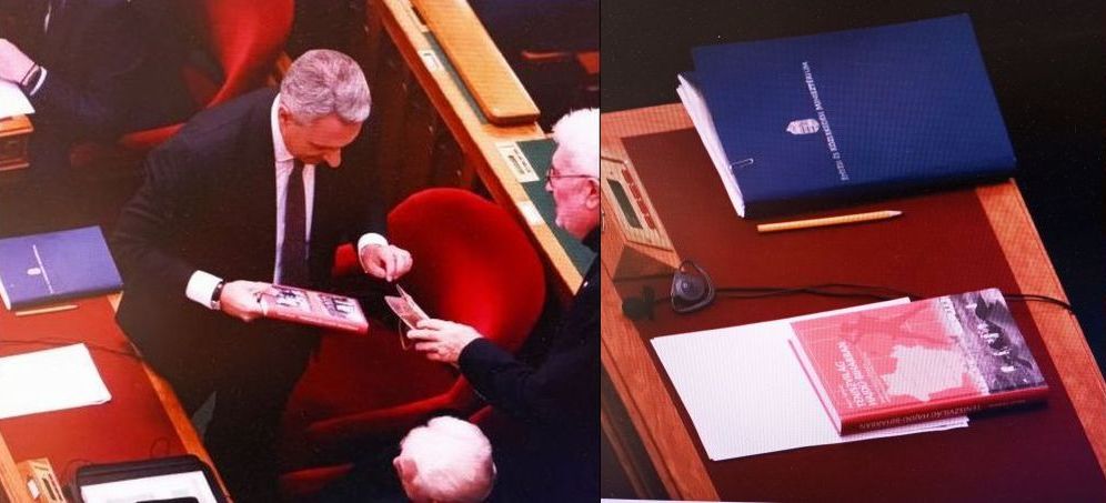 Az Országgyűlés őszi ülésszakának nyitónapján különös felvételt készített a telex.hu fotoriportere. A miniszter asztalán egy teniszkönyv pihent (talán nem véletlenül, hiszen Lázár János "civilben" a Magyar Tenisz Szövetség vezetője).
